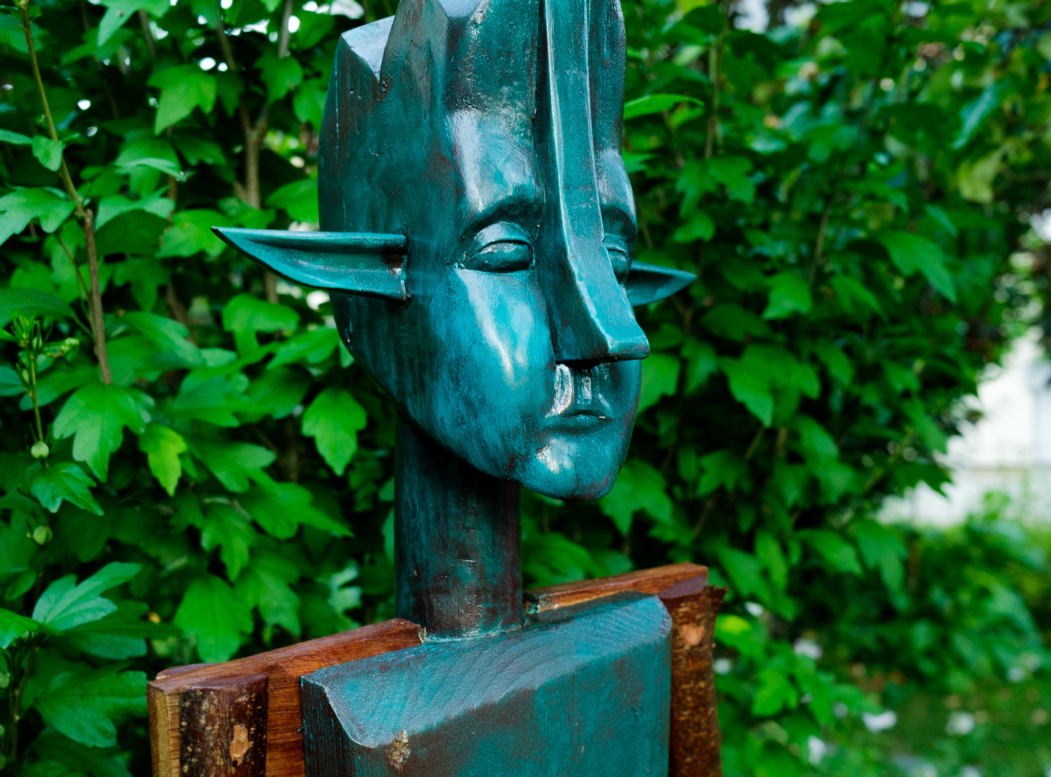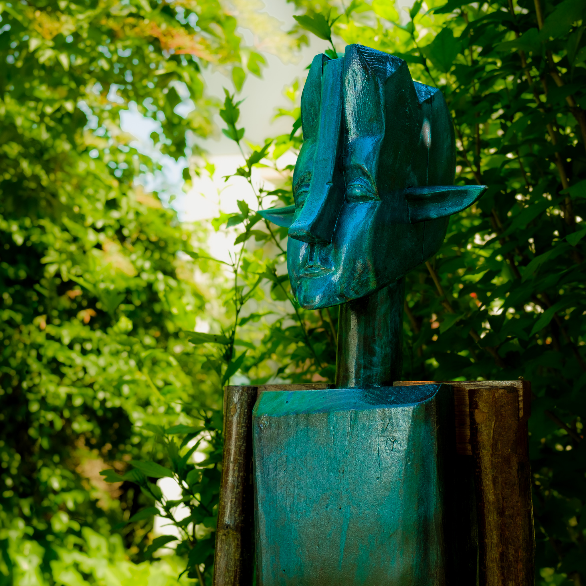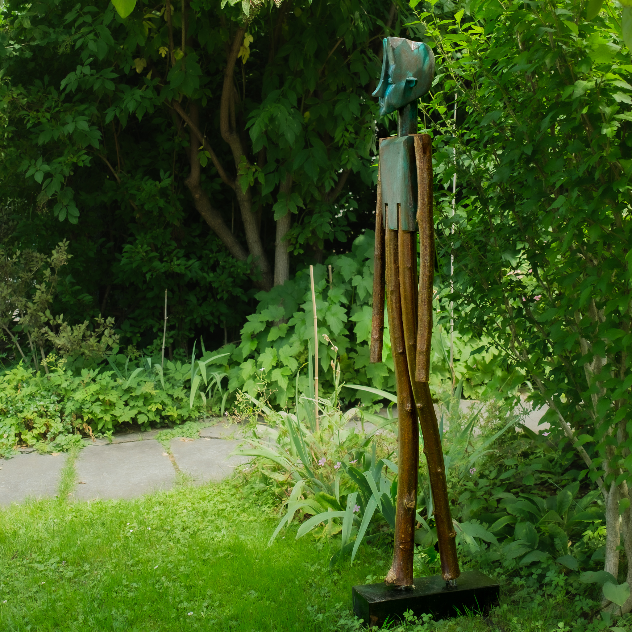 Haselnussstangen, Balken aus Abrisshaus, Holzöl, Pigmente